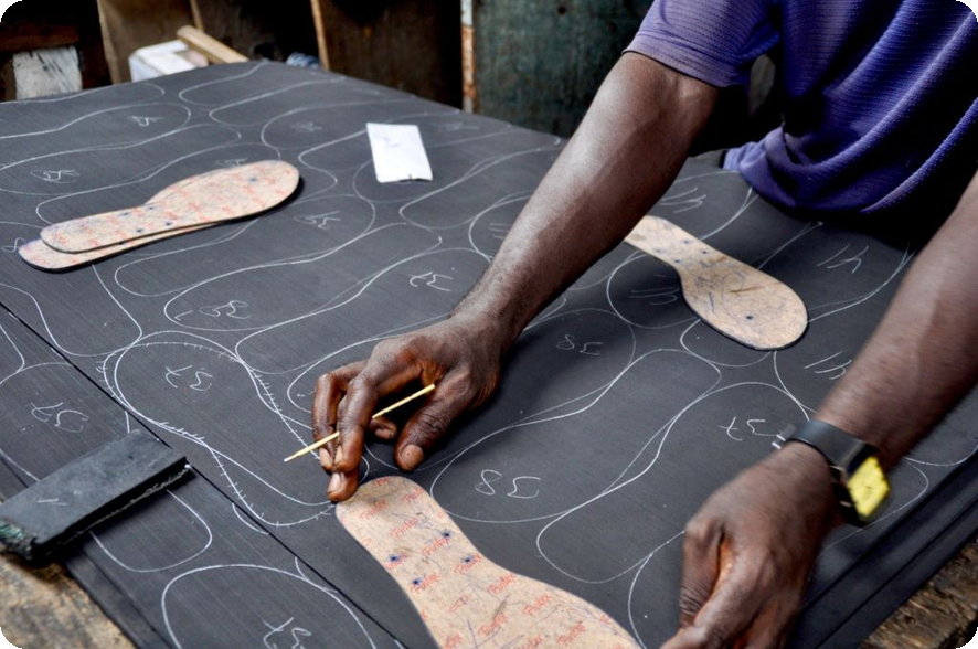 - 맨발로 종이 위에 서서 발의 모양을 그립니다.