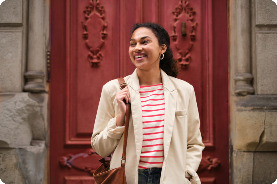- 기본 아이템(셔츠, 데님, 스니커즈)에 가벼운 아우터 추가